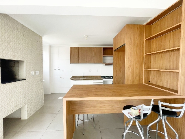 02 dormitórios (sendo 01 suíte), Sala de estar aconchegante, Banheiro social, Cozinha Semimobiliada, Área de serviço, Churrasqueira, 2 vagas de garagem.