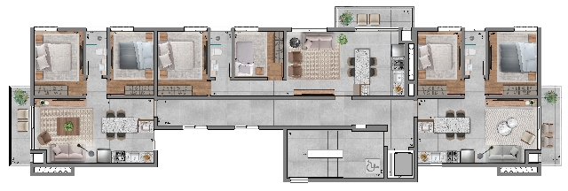Bock Navagio Residencial, Nova(o), 02 Dormitórios, Sala/Cozinha, Sacada, Banheiro, Box de Estacionamento. Proximidades Vila Militar, Posição Solar Norte/Leste/Sul, Área privativa: 75,31 m², Área total: 98,03 m². |