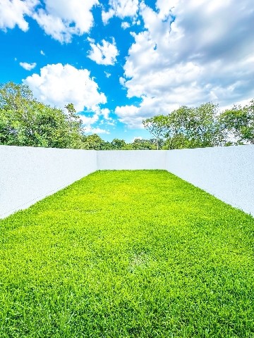 Possui ainda varanda com área de serviço, pátio frontal com grama, pátio nos fundos, pátio fechado e garagem privativa, garantindo conforto e privacidade.