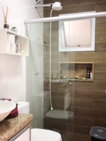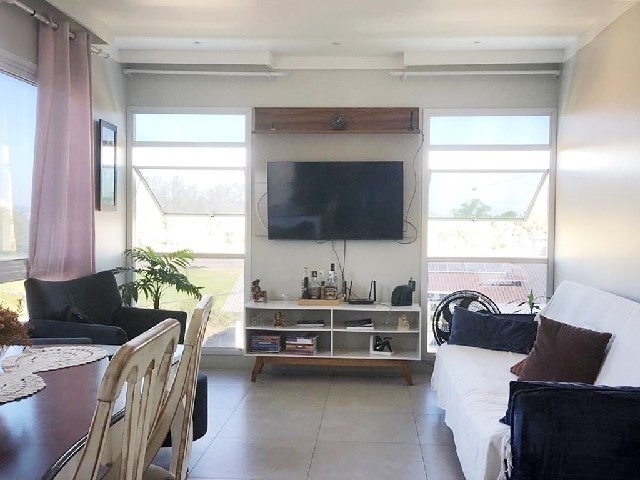 Alvenaria Semimobiliada(o) ocupada com 2 Dormitórios sendo 1 suíte com closet, Sala estar/Jantar, Banheiro Social, Banheiro, Cozinha Integrada, Área de Serviço, Espaço Gourmet, 2 Splits, 1 Garagem, 3 Vagas para Carro, Churrasqueira, Piso Porcelanato, Rebaixe de Gesso, Aberturas de alumínio, Pátio Fechado, Cercada(o), Piscina, Portão Eletrônico, Câmera(s) Vigilância. Posição Solar Sul. Área total: 57,40 m². Proximidades Sicredi e Imply