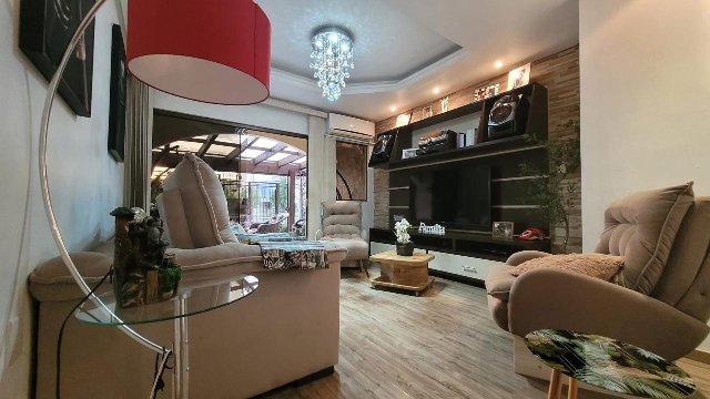 4 dormitórios, sendo 1 suíte, Sala de estar e jantar integradas, Cozinha mobiliada, 3 banheiros sociais, Área íntima com piso laminado e área social com piso cerâmico, Quiosque com espaço de lazer, Piscina, Pátio amplo e fechado, Portão eletrônico, 1 vaga de garagem, com ótima posição solar oeste.